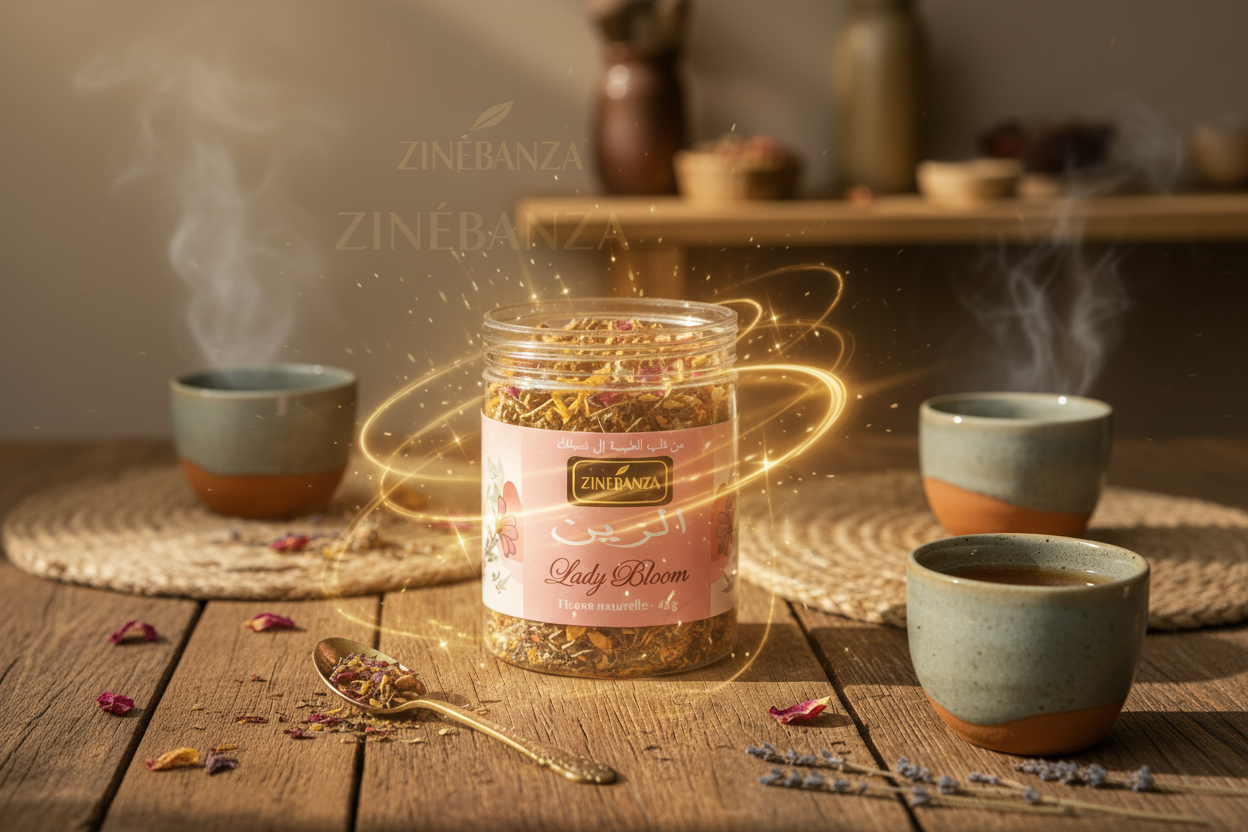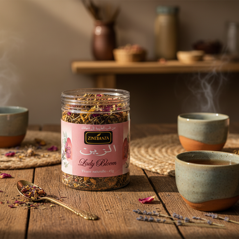 Lady Bloom Tisane Confort Féminin & Équilibre Naturel est une infusion pensée pour accompagner la femme dans son cycle, avec douceur et naturel.